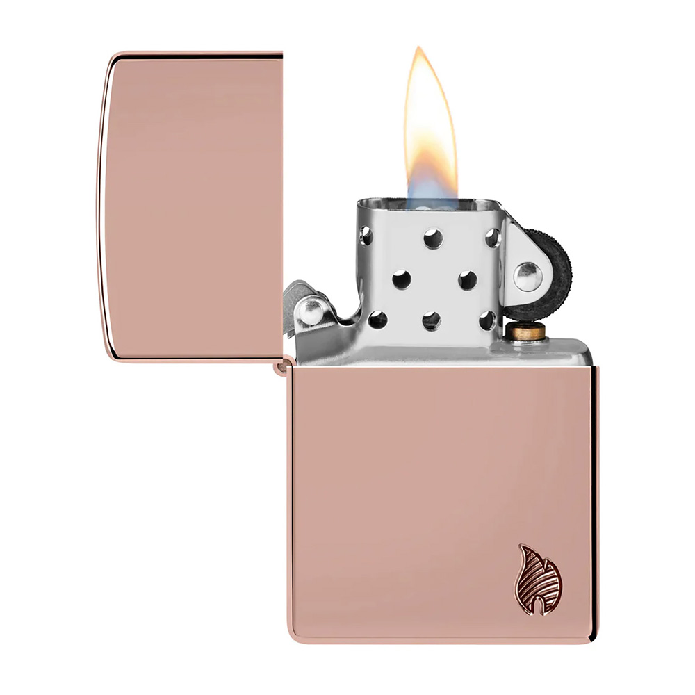 Add a touch of discreet luxury to your collection with this Armor® lighter? High Polish Rose Gold. The classic Zippo flame appears at the bottom right corner in minimalist Deep Carve design.