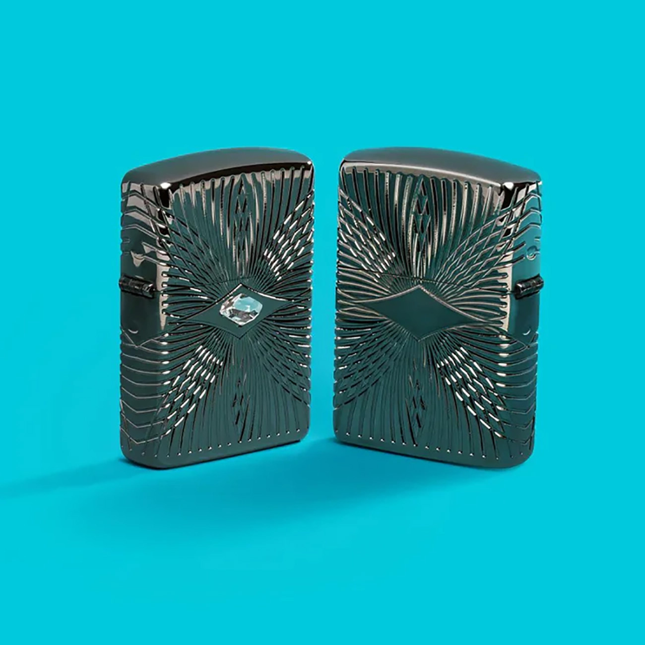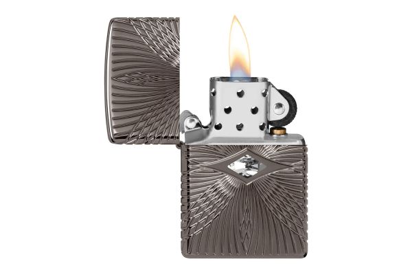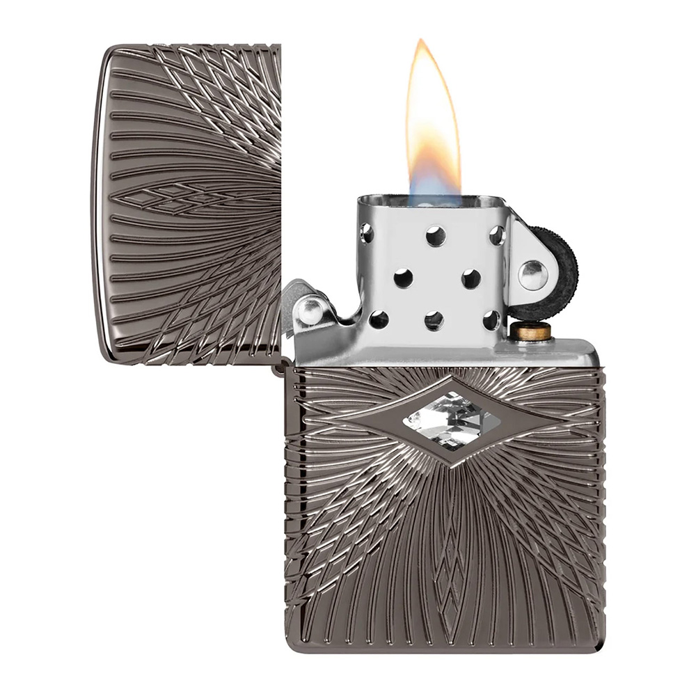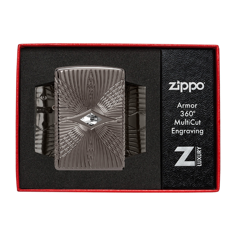 Η καταπραϋντική και συμμετρική χάραξη MultiCut εκπέμπεται από τον εκθαμβωτικό κρύσταλλο που είναι στερεωμένος σε αυτόν τον αστραφτερό αναπτήρα Armor® Black Ice® και συνεχίζεται απρόσκοπτα σε όλες τις πλευρές του αναπτήρα.