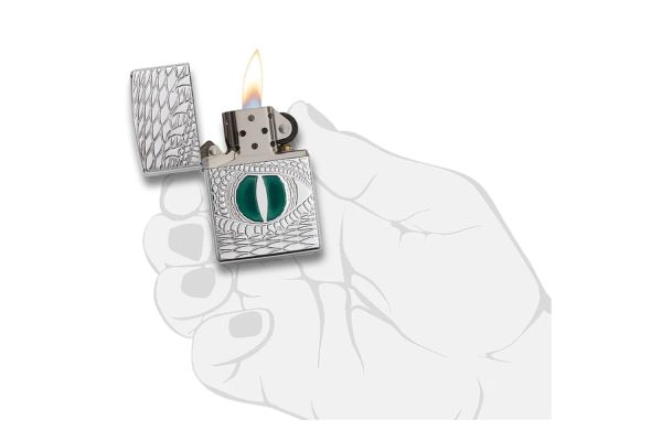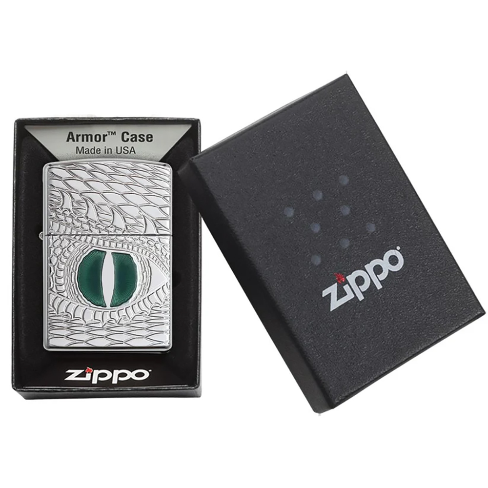 Ο Zippo® Dragon Eye Armor™ είναι ένας αναπτήρας με έντονο φαντασιακό και μυθικό χαρακτήρα. Το μάτι του δράκου, αποδοσμένο με βαθιά χάραξη Deep Carve, μοιάζει να ξεπροβάλλει από τη μεταλλική επιφάνεια, δημιουργώντας ένα επιβλητικό και δυναμικό αποτέλεσμα.