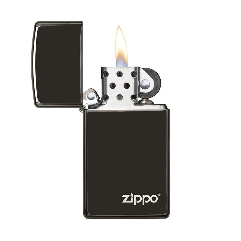 Slim® High Polish Black Zippo® Logo Lighter