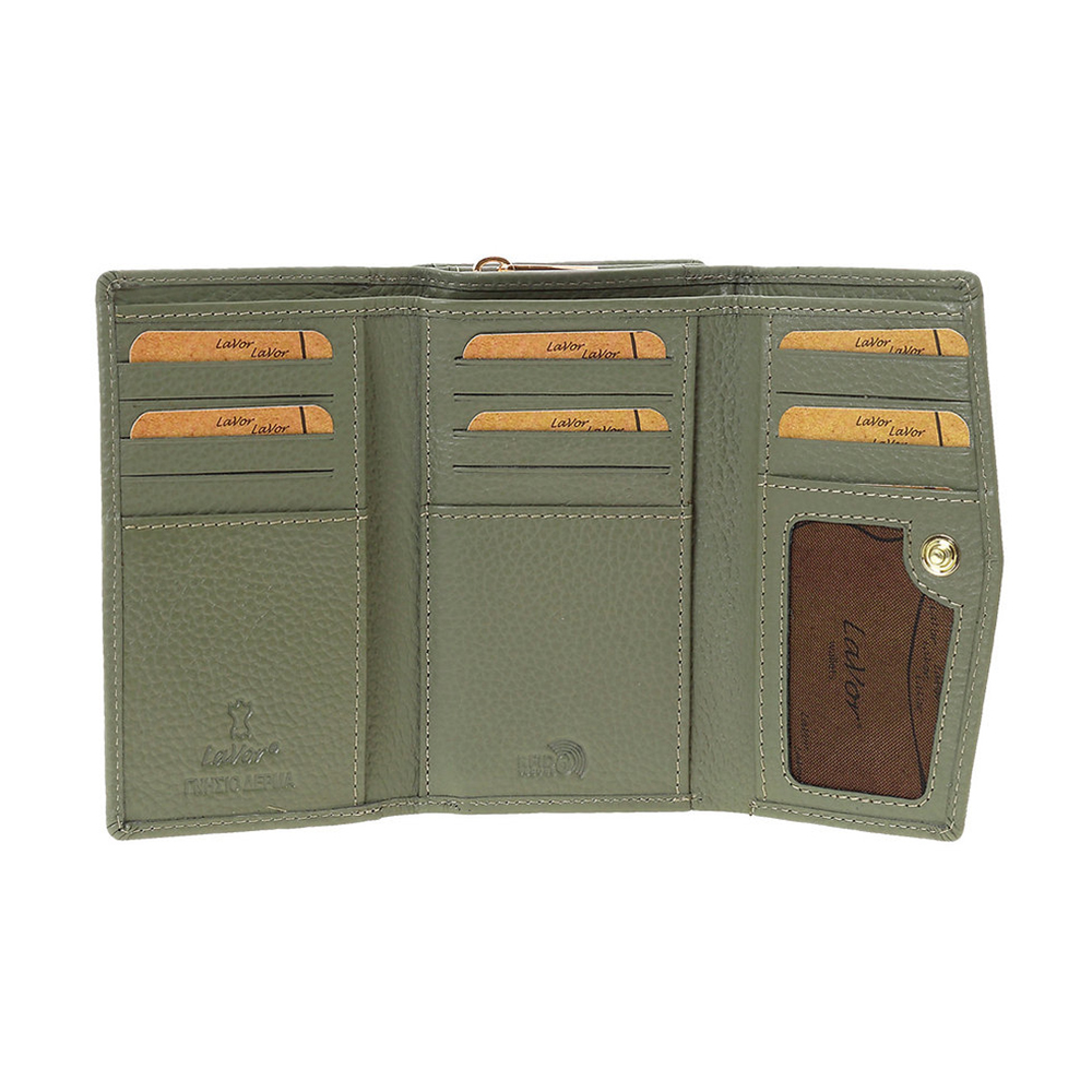Το χακί είναι το χρώμα της μοντέρνας, δυναμικής και στυλάτης γυναίκας. Το συγκεκριμένο πορτοφόλι της Lavor συνδυάζει το απαλό premium δέρμα με έναν τόνο που αποπνέει φυσικότητα και σύγχρονη κομψότητα.