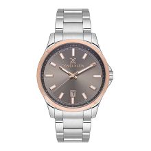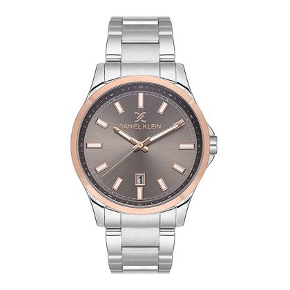 Upgrade your style with this modern male watch from Daniel Klein's collection. The metallic bracelet in silver color is perfectly combined with the gray dial and the pink-gold hoop, creating an air of elegance and timeless charm. It has a date indication function and clean design, suitable for both everyday use and official appearances.