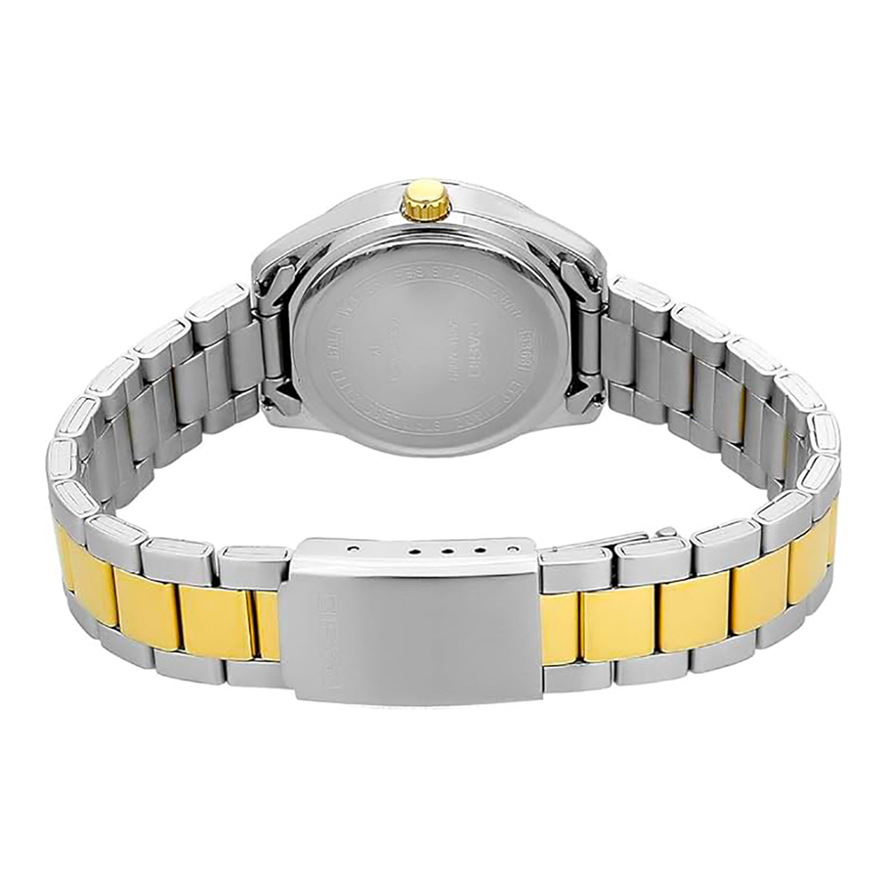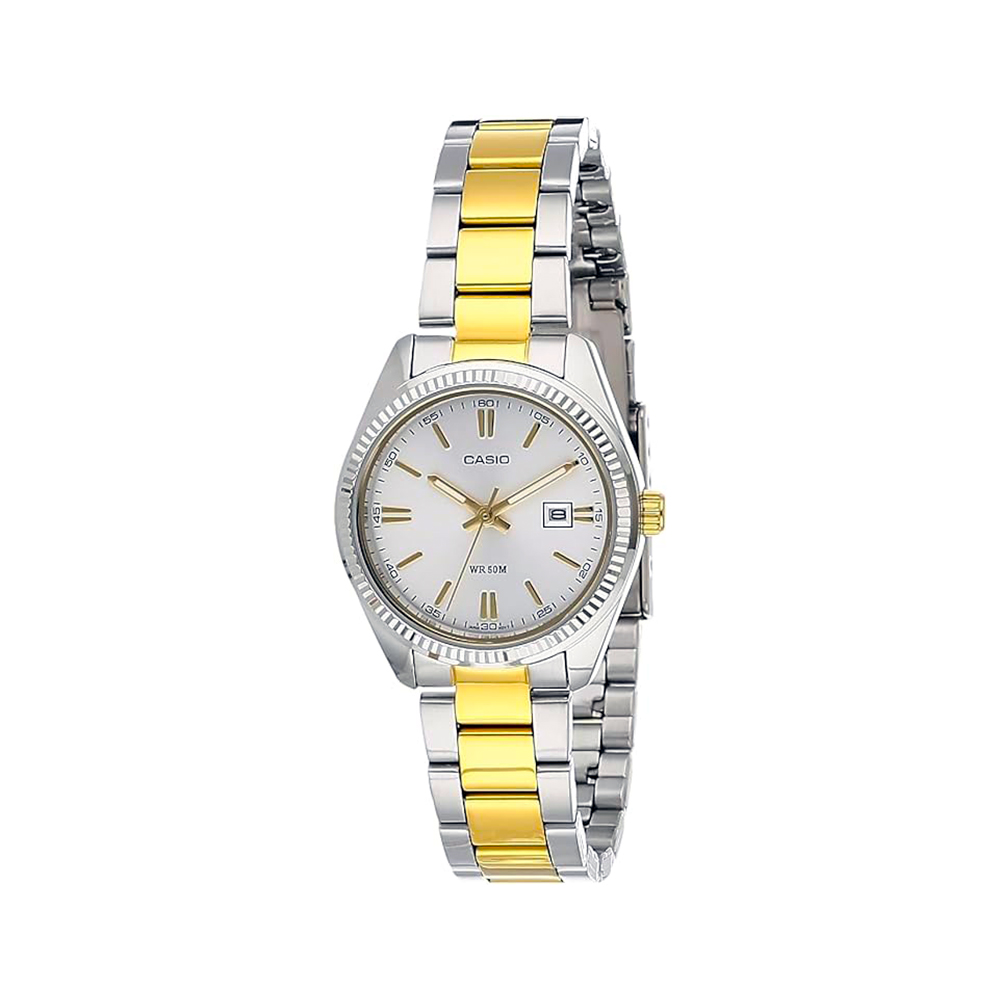Το Casio LTP-1302SG-7A δεν είναι απλώς ένα ρολόι· είναι μια διακριτική πινελιά κομψότητας που σε συνοδεύει σε κάθε στιγμή της ημέρας. Το δίχρωμο ασημί-χρυσό μπρασελέ αγκαλιάζει τον καρπό με αρμονία, ενώ το φωτεινό λευκό καντράν αποπνέει καθαρότητα, ισορροπία και διαχρονικό στυλ. Είναι το ρολόι που φοράς χωρίς δεύτερη σκέψη – στη δουλειά, στη βόλτα, σε μια ιδιαίτερη έξοδο – και νιώθεις πάντα προσεγμένη, σίγουρη και κομψή. Ένα κόσμημα χρόνου που δεν ακολουθεί τη μόδα, αλλά την ξεπερνά.
