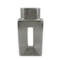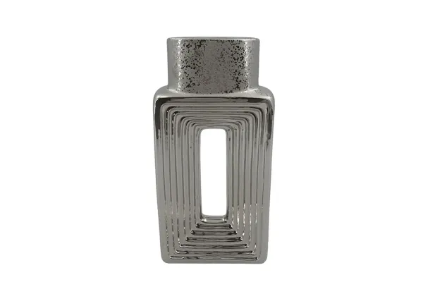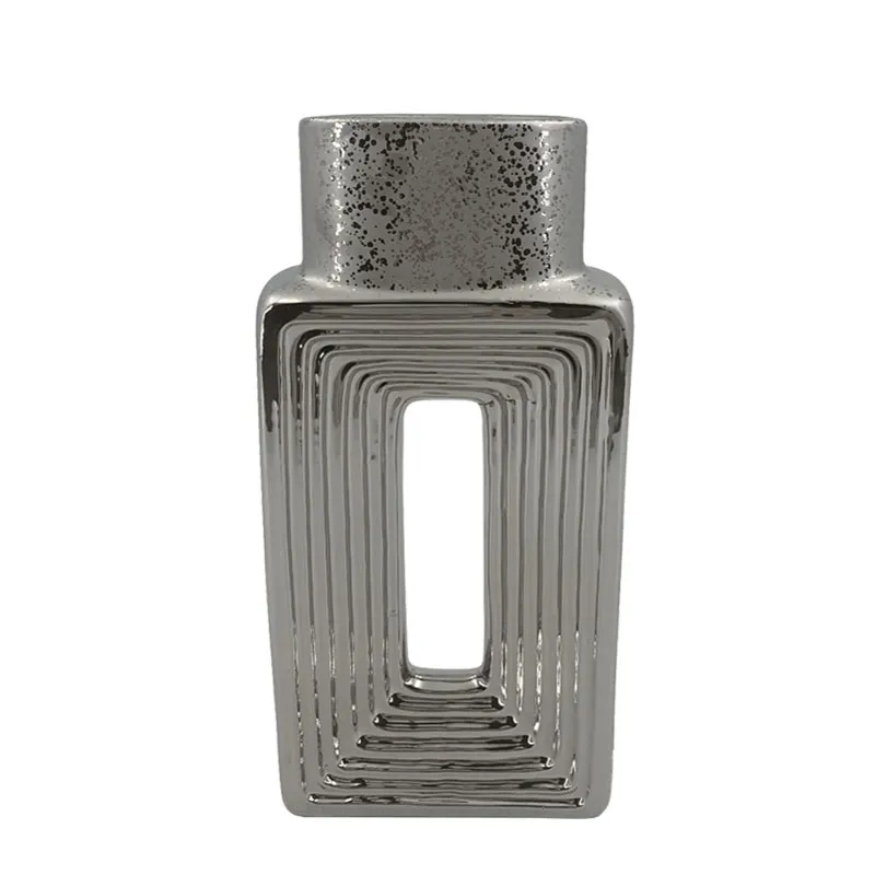 ΚΕΡΑΜΙΚO ΔΙΑΚΟΣΜΗΤΙΚO BAZO - ΧΡΩΜΑ: ΑΣΗΜΙ - ΣΧΕΔΙΟ: ΡΙΓΕ & ΣTAMΠΩΤΟ ΜΕ ΤΡΥΠΑ - ΔΙΑΣΤΑΣΕΙΣ: 14x6x30cm - ΚΙΒΩΤΙΟ: 12 CERAMIC DECORATIVE VASE - COLOR: SILVER - DESIGN: STRIPED & STAMPED WITH HOLE - DIMENSIONS: 14x6x30cm - BOX: 12