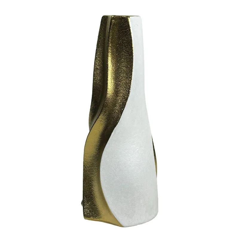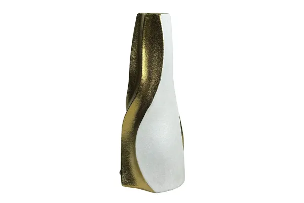 ΔΙΑΚΟΣΜΗΤΙΚΟ ΒΑΖΟ ΚΩΝΙΚΟ ΚΑΘΕΤΑ ΚΥΜΑΤΑ - ΧΡΩΜΑ: ΛΕΥΚΟ/ΧΡΥΣΟ - ΥΛΙΚΟ: ΚΕΡΑΜΙΚΟ - ΚΙΒΩΤΙΟ: 4 ΔΙΑΣΤΑΣΕΙΣ / DIMΕNSIONS: 43.7cm DECORATIVE CONΕ VASE WITH VERTICAL WAVES - COLOR: WHITE/GOLD - MATERIAL: CERAMIC - ΒΟΧ: 4