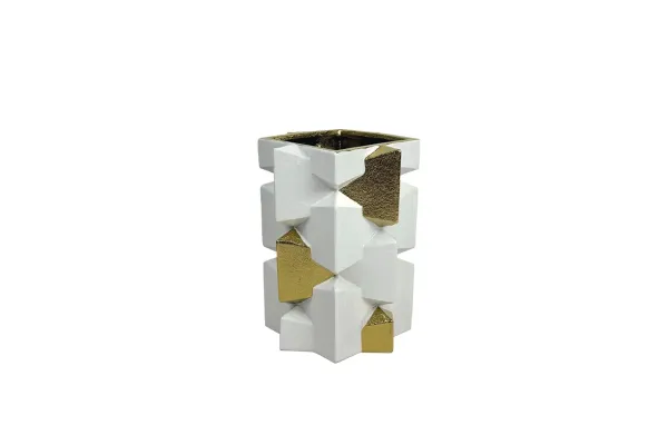 ΚΕΡΑΜΙΚΟ ΒΑΖΟ ΛΕΥΚΟ/ΧΡΥΣΟ ΤΕΤΡΑΓΩΝΑ ΧΙΑΣΤI SMALL - 24.1cm 1/4ΚΙΒ
