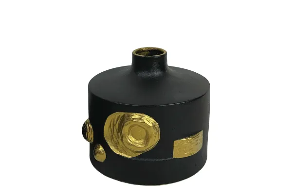 ΒΑΖΟ ΚΟΝΤΟ ME ΠΡΟΣΘΕΤΑ ΧΡΥΣΑ ΚΟΜΜΑΤΙΑ - ΧΡΩΜΑ: ΜΑΥΡΟ/ΧΡΥΣΟ - ΥΛΙΚΟ: ΚΕΡΑΜΙΚΟ - ΚΙΒΩΤΙΟ: 8 ΔΙΑΣΤΑΣΕΙΣ / DIMΕNSIONS: 21.6cm SHORT VASE WITH ADDITIONAL GOLD PIECES - COLOR: BLACK/GOLD - MATERIAL: CERAMIC - ΒΟΧ: 8