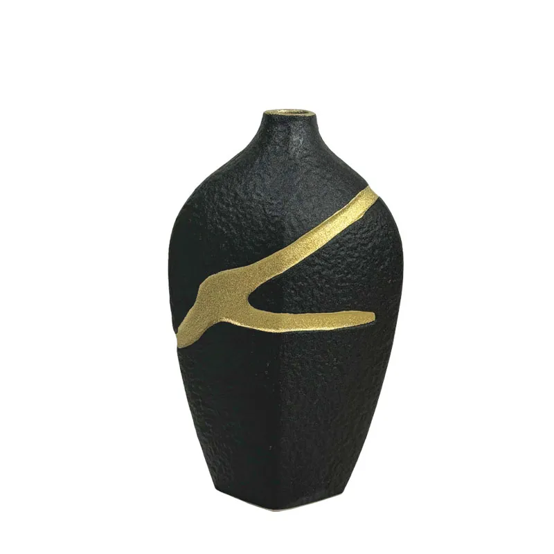 ΚΕΡΑΜΙΚΟ ΒΑΖΟ ΜΑΥΡΟ ΜΕ ΧΡΥΣΟ ΑΥΛΑΚΩΤΟ ΣΧΕΔΙΟ ΜΙΚΡΟ - 30cm 1/8ΚΙΒ