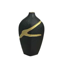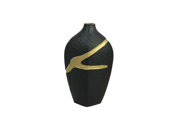 ΒΑΖΟ ΜΕ ΧΡΥΣΟ ΑΥΛΑΚΩΤΟ ΣΧΕΔΙΟ - ΧΡΩΜΑ: ΜΑΥΡΟ/ΧΡΥΣΟ - ΥΛΙΚΟ: ΚΕΡΑΜΙΚΟ - ΚΙΒΩΤΙΟ: 8 ΔΙΑΣΤΑΣΕΙΣ / DIMΕNSIONS: 30cm VASE WITH GOLDEN GROOVES DESIGN - COLOR: BLACK/GOLD - MATERIAL: CERAMIC - ΒΟΧ: 8