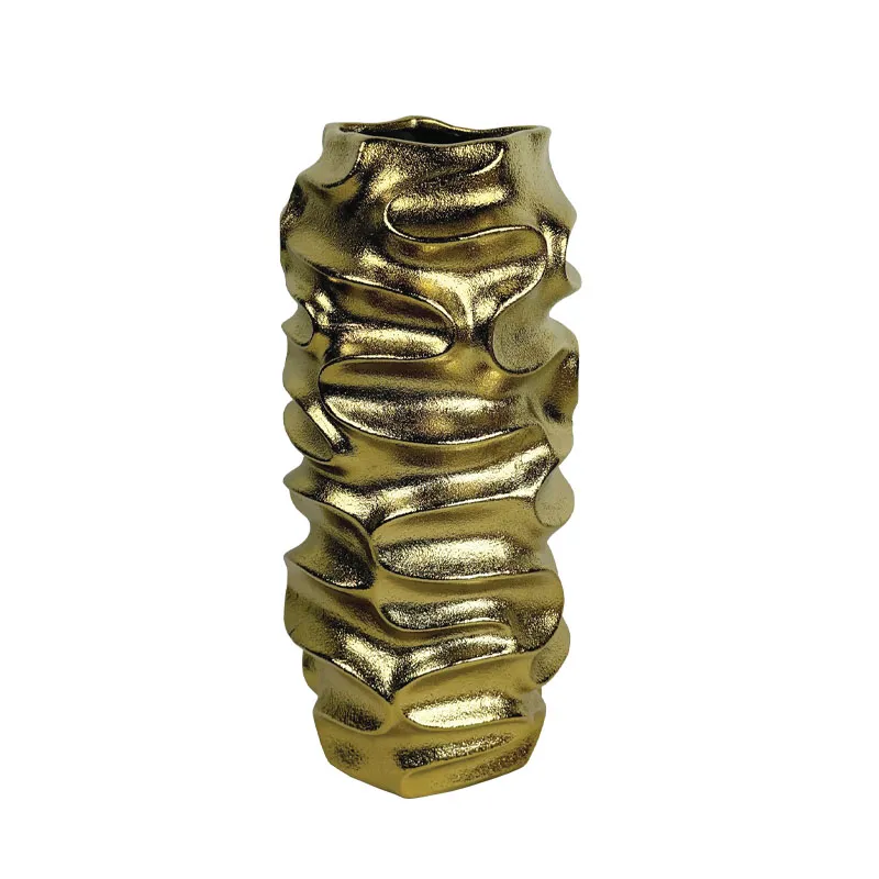 ΔΙΑΚΟΣΜΗΤΙΚΟ ΒΑΖΟ ΧΥΤΟ ΚΥΜΑΤΙΣΤΟ ΕΦΕ - ΧΡΩΜΑ: ΧΡΥΣΟ - ΥΛΙΚΟ: ΚΕΡΑΜΙΚΟ - ΚΙΒΩΤΙΟ: 6 ΔΙΑΣΤΑΣΕΙΣ / DIMΕNSIONS: 34.3cm DECORATIVE VASE CAST WITH RIBBED EFFECT - COLOR: GOLD - MATERIAL: CERAMIC - ΒΟΧ: 6