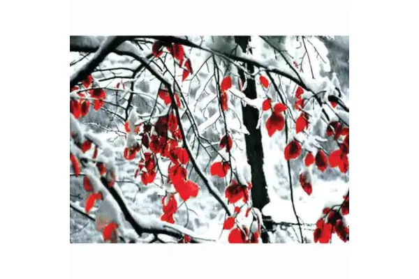 ΓΥΑΛΙΝΟ ΚΑΔΡΑΚΙ - ΑΝΘΙΣΜΕΝΑ ΚΛΑΔΙΑ ΣΤΟ ΧΙΟΝΙ 60x40cm 6ΚΙΒ