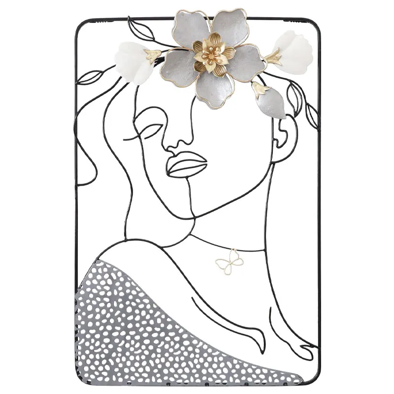 ΜΕΤΑΛΛΙΚΟ ΔΙΑΚΟΣΜΗΤΙΚΟ ΤΟΙΧΟΥ ΓΥΝΑΙΚΑ ΜΕ ΛΟΥΛΟΥΔΙ ΣΤΑ ΜΑΛΛΙΑ - 40.0x61x3.8cm 4/KIB