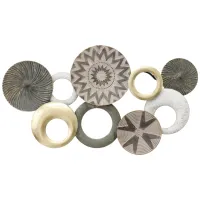 ΔΙΑΚΟΣΜΗΤΙΚΟ ΜΕΤΑΛΛΙΚO TOIXOY - ΧΡΩΜΑ: ΧΡΥΣΟ/ΓΚΡΙ/ΛΕΥΚΟ/ΚΑΦΕ - ΣΧΕΔΙΟ: ΚΥΚΛΟΙ ΣΤΥΛ BOHO - ΚΙΒ: 4 ΔΙΑΣΤΑΣΕΙΣ / DIMΕNSIONS: 71.1x39.4x5.1cm METAL WALL DECORATIVE - COLOR: GOLD/GREY/WHITE/BROWN - DESIGN: CIRCLES BOHO STYLE - BOX: 4