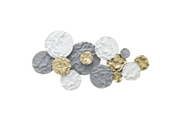 ΜΕΤΑΛΛΙΚΟ ΤΟΙΧΟΥ ΧΡΥΣΟ/ΓΚΡΙ/ΛΕΥΚΟ ΚΥΚΛΟΙ ΤΣΑΛΑΚΩΤΟ - 134.6x67.3x6.4cm 2/KIB