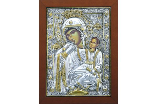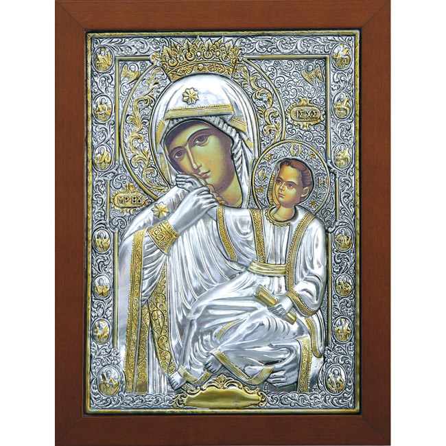 ΘΡΗΣΚΕΥΤΙΚΗ ΕΙΚΟΝΑ ΑΛΟΥΜΙΝΙΟΥ ΜΕ ΚΑΦΕ ΚΟΡΝΙΖΑ KAI ΧΡΥΣΕΣ ΛΕΠΤΟΜΕΡΕΙΕΣ - ΘΕΜΑ: ΠΑΝΑΓΙΑ ΠΑΡΑΜΥΘΙΑ - ΥΛΙΚΟ: ΑΛΟΥΜΙΝΙΟ, ΞΥΛΟ - ΔΙΑΣΤΑΣΕΙΣ: 26x34cm - ΚΙΒΩΤΙΟ: -/- ALUMINUM RELIGIOUS ICON WITH BROWN FRAME AND GOLDEN DETAILS - THEME: PARAMITHIA VIRGIN - MATERIAL: ALUMINUM, WOOD - DIMENSIONS: 26x34cm - BOX: -/-