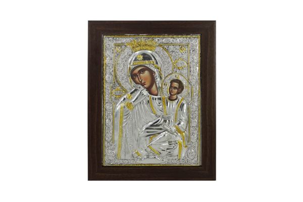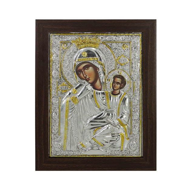 ΘΡΗΣΚΕΥΤΙΚΗ ΕΙΚΟΝΑ ΑΛΟΥΜΙΝΙΟΥ ΜΕ ΚΑΦΕ ΚΟΡΝΙΖΑ KAI ΧΡΥΣΕΣ ΛΕΠΤΟΜΕΡΕΙΕΣ - ΘΕΜΑ: ΠΑΝΑΓΙΑ ΠΑΡΑΜΥΘΙΑ - ΥΛΙΚΟ: ΑΛΟΥΜΙΝΙΟ, ΞΥΛΟ - ΔΙΑΣΤΑΣΕΙΣ: 28x36cm - ΚΙΒΩΤΙΟ: -/- ALUMINUM RELIGIOUS ICON WITH BROWN FRAME AND GOLDEN DETAILS - THEME: PARAMYTHIA VIRGIN MARY - MATERIAL: ALUMINUM, WOOD - DIMENSIONS: 28x36cm - BOX: -/-