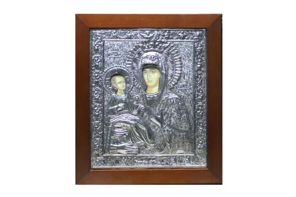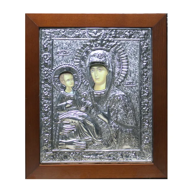ΘΡΗΣΚΕΥΤΙΚΗ ΕΙΚΟΝΑ ΑΛΟΥΜΙΝΙΟΥ ΜΕ ΚΑΦΕ ΚΟΡΝΙΖΑ - ΘΕΜΑ: ΠΑΝΑΓΙΑ ΤΡΙΧΕΡΟΥΣΑ - ΥΛΙΚΟ: ΑΛΟΥΜΙΝΙΟ, ΞΥΛΟ - ΔΙΑΣΤΑΣΕΙΣ: 34x40cm - ΚΙΒΩΤΙΟ: -/- ALUMINUM RELIGIOUS ICON WITH BROWN FRAME - THEME: TRICHEROUSA VIRGIN - MATERIAL: ALUMINUM, WOOD - DIMENSIONS: 34x40cm - BOX: -/-