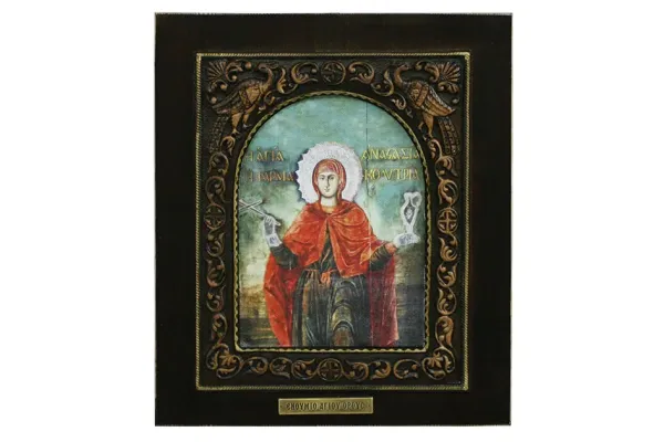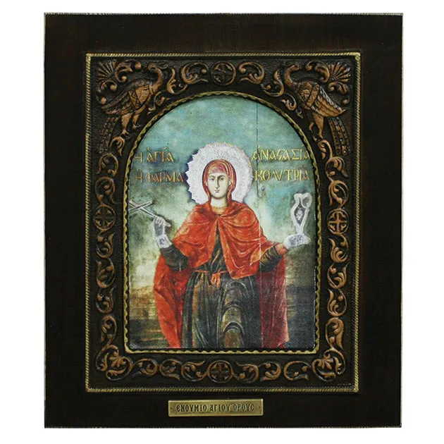 ΞΥΛΙΝΗ ΑΝΑΓΛΥΦΗ ΕΙΚΟΝΑ ΑΓΙΑ ΑΝΑΣΤΑΣΙΑ ΦΑΡΜΑΚΟΛΥΤΡΙΑ ΣΕ ΚΟΥΤΙ - 24x28cm