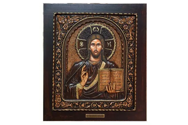 ΞΥΛΙΝΗ ΑΝΑΓΛΥΦΗ ΕΙΚΟΝΑ ΧΡΙΣΤΟΣ ΕΥΛΟΓΩΝ (ΜΕ ΠΛΑΙΣΙΟ) - 32x36.5cm