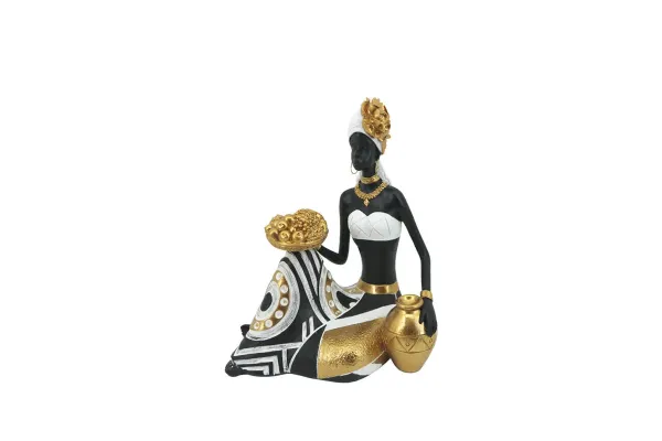 ΔΙΑΚΟΣΜΗΤΙΚΗ ΦΙΓΟΥΡΑ ΠΑΡΑΔΟΣΙΑΚΗ ΑΦΡΙΚΑΝΑ ΜΕ ΦΡΟΥΤΑ - ΧΡΩΜΑ: ΜΑΥΡΟ/ΛΕΥΚΟ/ΧΡΥΣΟ - ΥΛΙΚΟ: ΠΟΛΥΡΕΣΙΝΗ - ΚΙΒΩΤΙΟ: 8 ΔΙΑΣΤΑΣΕΙΣ / DIMΕNSIONS: 19x12.5x22.5cm DECORATIVE AFRICAN TRADITIONAL WOMAN FIGURE WITH FRUITS - COLOR: BLACK/WHITE/GOLD - MATERIAL: POLYRESIN - ΒΟΧ: 8