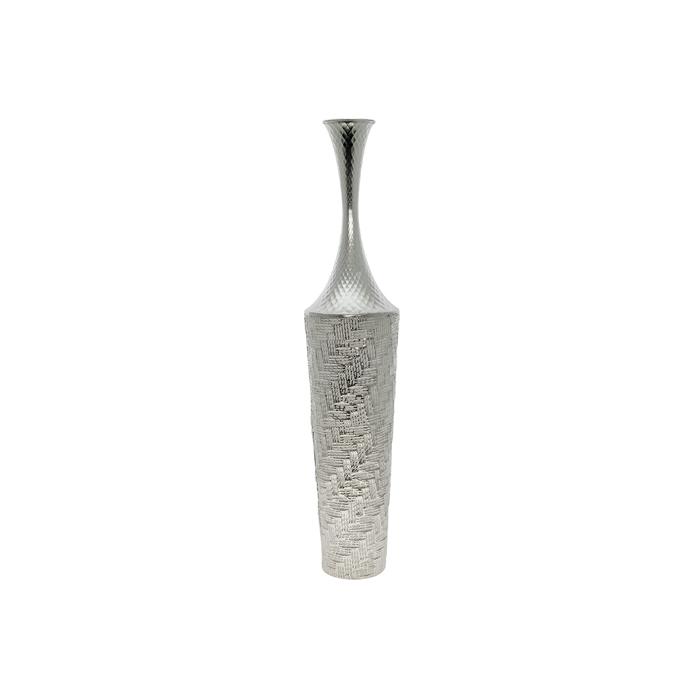 Βάζο Μεταλλ. Δαπέδου με Ψηλό Λαιμό Ασημί 14.7x14x.7x70εκ.