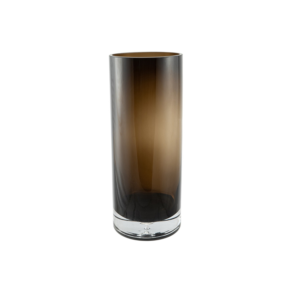 Βάζο Γυάλ. Φυσητό Κύλινδρος Καφέ + Μπίλια 12x12x30εκ.