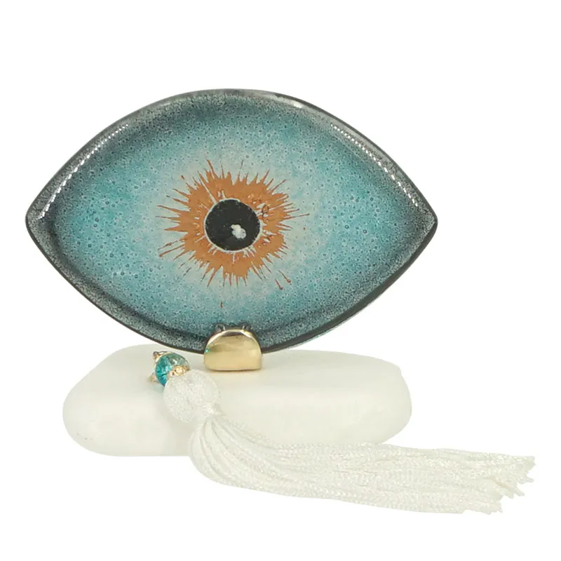 ΕΠΙΤΡΑΠΕΖΙΟ ΔΙΑΚΟΣΜΗΤΙΚΟ ΓΥΑΛΙΝΟ ΦΟΥΤΖΙ - ΘΕΜΑ: MATI - ΧΡΩΜΑ: ΜΠΛΕ, ΛΕΥΚΟ, ΧΡΥΣΟ, - ΥΛΙΚΑ: ΠΕΤΡΑ, ΓΥΑΛΙ ΦΟΥΤΖΙ, ΜΕΤΑΛΛO, ΦΟΥΝΤΑ - ΔΙΑΣΤΑΣΕΙΣ: 11.5x10cm TABLE DECORATIVE FUISHING ART GLASS - THEME: EYE - COLOR: BLUE, WHITE, GOLD - MATERIALS: STONE, FUISHING GLASS, METAL, TUFT - DIMENSIONS: 11.5x10cm
