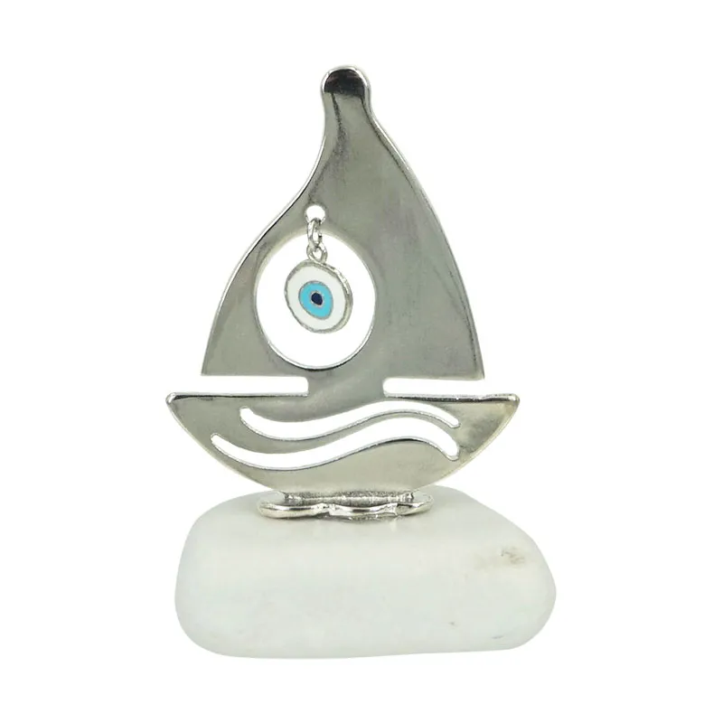 ΔΙΑΚΟΣΜΗΤΙΚΟ ΕΠΙΤΡΑΠΕΖΙΟ ΜΕΤΑΛΛΙΚΟ ME ΠΕΤΡΑ - ΘΕΜΑ: ΚΑΡΑΒΙ, ΜΑΤΙ - ΧΡΩΜΑ: ΑΣΗΜΙ, ΛΕΥΚΟ, ΤΙΡΚΟΥΑΖ, - ΥΛΙΚΑ: ΠΕΤΡΑ, ΜΕΤΑΛΛO, ΣΜΑΛΤΟ - ΔΙΑΣΤΑΣΕΙΣ: 11.5x10cm TABLE METAL-STONE DECORATIVE - THEME: BOAT, EYE - COLOR: SILVER, WHITE, TURQUOISE - MATERIALS: STONE, METAL, ENAMEL - DIMENSIONS: 11.5x10cm