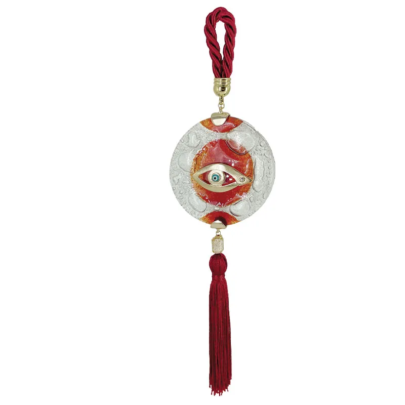 ΚΡΕΜΑΣΤΟ ΓΟΥΡΙ ΜΕ ΦΥΣΗΤΟ ΓΥΑΛΙ - ΧΡΩΜΑ: ΜΠΟΡΝΤΩ, ΠΟΡΤΟΚΑΛΙ, ΛΕΥΚΟ, ΧΡΥΣΟ - ΣΤΟΙΧΕΙΑ: ΜΑΤΙ, ΧΑΝΤΡΑ, ΦΟΥΝΤΑ - ΥΛΙΚΑ: ΚΟΡΔΟΝΙ, ΓΥΑΛΙ, ΜΕΤΑΛΛO, ΚΛΩΣΤΕΣ, ΑΚΡΥΛΙΚΟ - ΔΙΑΣΤΑΣΕΙΣ: Υ35cm HANGING CHARM WITH NATURAL GLASS - COLOR: BURGUNDY, ORANGE, WHITE, GOLD - ELEMENTS: EYE, BEAD, TUFT - MATERIALS: CORD, GLASS, METAL, THREAD, ACRYLIC - DIMENSIONS: Η35cm