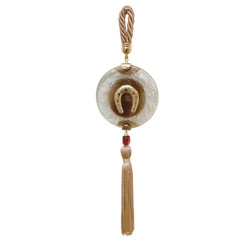 ΚΡΕΜΑΣΤΟ ΓΟΥΡΙ ΜΕ ΦΥΣΗΤΟ ΓΥΑΛΙ - ΧΡΩΜΑ: ΜΠΕΖ, ΚΑΦΕ, ΛΕΥΚΟ, ΧΡΥΣΟ - ΣΤΟΙΧΕΙΑ: ΠΕΤΑΛΟ, ΧΑΝΤΡΑ, ΦΟΥΝΤΑ - ΥΛΙΚΑ: ΚΟΡΔΟΝΙ, ΓΥΑΛΙ, ΜΕΤΑΛΛO, ΚΛΩΣΤΕΣ, ΑΚΡΥΛΙΚΟ - ΔΙΑΣΤΑΣΕΙΣ: Υ35cm HANGING CHARM WITH NATURAL GLASS - COLOR: BEIGE, BROWN, WHITE, GOLD - ELEMENTS: HORSESHOE, BEAD, TUFT - MATERIALS: CORD, GLASS, METAL, THREAD, ACRYLIC - DIMENSIONS: Η35cm