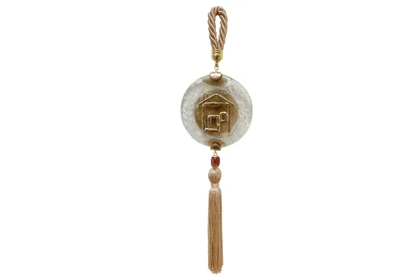 ΚΡΕΜΑΣΤΟ ΓΟΥΡΙ ΜΕ ΦΥΣΗΤΟ ΓΥΑΛΙ - ΧΡΩΜΑ: ΜΠΕΖ, ΚΑΦΕ, ΛΕΥΚΟ, ΧΡΥΣΟ - ΣΤΟΙΧΕΙΑ: ΣΠΙΤΙ, ΧΑΝΤΡΑ, ΦΟΥΝΤΑ - ΥΛΙΚΑ: ΚΟΡΔΟΝΙ, ΓΥΑΛΙ, ΜΕΤΑΛΛO, ΚΛΩΣΤΕΣ, ΑΚΡΥΛΙΚΟ - ΔΙΑΣΤΑΣΕΙΣ: Υ35cm HANGING CHARM WITH NATURAL GLASS - COLOR: BEIGE, BROWN, WHITE, GOLD - ELEMENTS: HOUSE, BEAD, TUFT - MATERIALS: CORD, GLASS, METAL, THREAD, ACRYLIC - DIMENSIONS: Η35cm