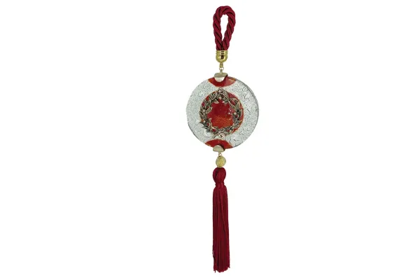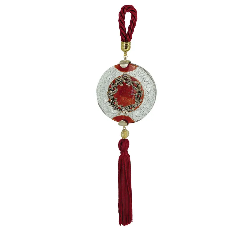 ΚΡΕΜΑΣΤΟ ΓΟΥΡΙ ΜΕ ΦΥΣΗΤΟ ΓΥΑΛΙ - ΧΡΩΜΑ: ΜΠΟΡΝΤΩ, ΠΟΡΤΟΚΑΛΙ, ΛΕΥΚΟ, ΧΡΥΣΟ - ΣΤΟΙΧΕΙΑ: ΣΤΕΦΑΝΙ, ΧΑΝΤΡΑ, ΦΟΥΝΤΑ - ΥΛΙΚΑ: ΚΟΡΔΟΝΙ, ΓΥΑΛΙ, ΜΕΤΑΛΛO, ΚΛΩΣΤΕΣ, ΑΚΡΥΛΙΚΟ - ΔΙΑΣΤΑΣΕΙΣ: Υ35cm HANGING CHARM WITH NATURAL GLASS - COLOR: BURGUNDY, ORANGE, WHITE, GOLD - ELEMENTS: WREATH, BEAD, TUFT - MATERIALS: CORD, GLASS, METAL, THREAD, ACRYLIC - DIMENSIONS: Η35cm