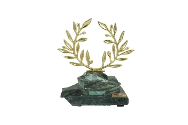 ΕΠΙΤΡΑΠΕΖΙΟ ΔΙΑΚΟΣΜΗΤΙΚΟ ΓΥΑΛΙΝΟ ΦΟΥΤΖΙ - ΘΕΜΑ: ΣΤΕΦΑΝΙ ΕΛΙΑΣ - ΧΡΩΜΑ: ΜΑΥΡΟ ΓΥΑΛΙ, ΣΤΕΦΑΝΙ ΧΡΥΣΟ, - ΥΛΙΚΑ: ΓΥΑΛΙ ΦΟΥΤΖΙ, ΜΕΤΑΛΛO - ΔΙΑΣΤΑΣΕΙΣ: 12x10.5cm TABLE DECORATIVE FUISHING ART GLASS - THEME: OLIVE CROWN - COLOR: BLACK GLASS, CROWN - MATERIALS: FUISHING GLASS, METAL - DIMENSIONS: 12x10.5cm