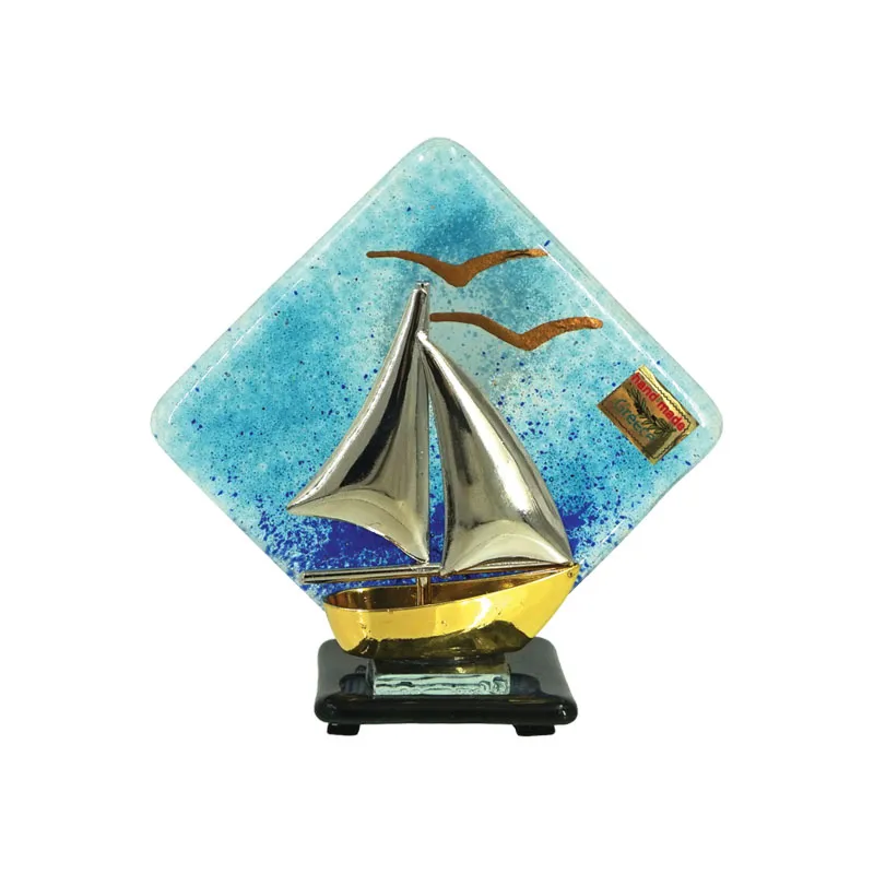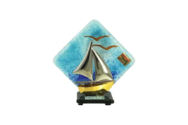 ΕΠΙΤΡΑΠΕΖΙΟ ΔΙΑΚΟΣΜΗΤΙΚΟ ΓΥΑΛΙΝΟ ΦΟΥΤΖΙ - ΘΕΜΑ: ΚΑΡΑΒΑΚΙ-ΘΑΛΑΣΣΑ - ΧΡΩΜΑ: ΜΠΛΕ ΓΥΑΛΙ, ΧΡΥΣΟ, ΑΣΗΜΙ - ΥΛΙΚΑ: ΓΥΑΛΙ ΦΟΥΤΖΙ, ΜΕΤΑΛΛO - ΔΙΑΣΤΑΣΕΙΣ: 12x11cm TABLE DECORATIVE FUISHING ART GLASS - THEME: SAILBOAT-SEA - COLOR: BLUE GLASS, GOLD, SILVER - MATERIALS: FUISHING GLASS, METAL - DIMENSIONS: 12x11cm