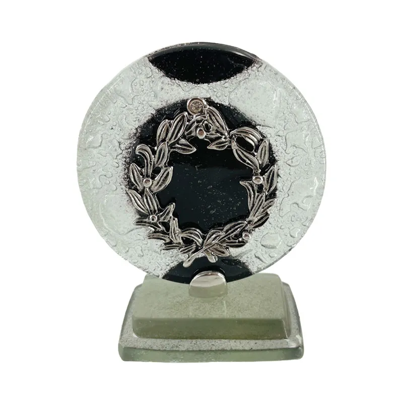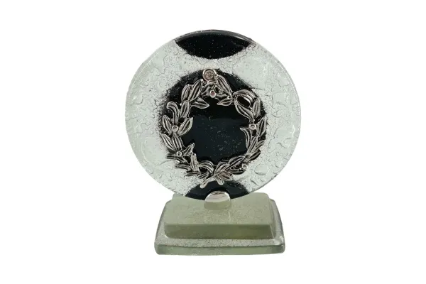 ΕΠΙΤΡAΠΕΖΙΟ ΔΙΑΚΟΣΜΗΤΙΚΟ ΓΟΥΡΙ ΣΤΕΦΑΝΙ ΑΣΗΜΙ ΣΕ ΦΥΣΗΤΟ ΓΥΑΛΙ ΜΑΥΡΟ/ΛΕΥΚΟ - Υ12cm