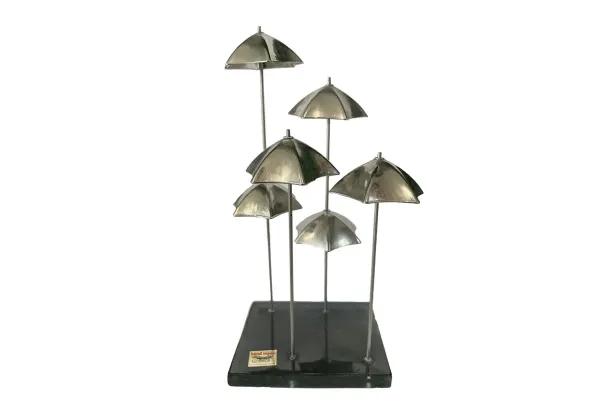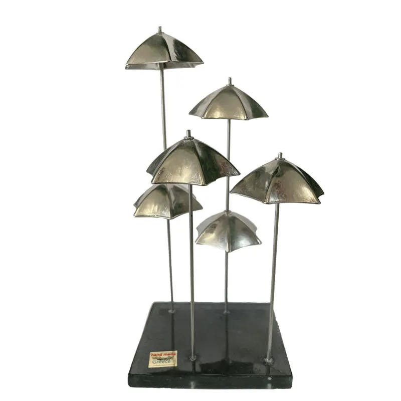ΕΠΙΤΡΑΠΕΖΙΟ ΜΕΤΑΛΛΙΚΟ ΔΙΑΚΟΣΜΗΤΙΚΟ ΣΕ ΓΥΑΛΙΝΗ ΒΑΣΗ - ΧΡΩΜΑΤΑ: ΑΣΗΜΙ, ΜΑΥΡΟ - ΘΕΜΑ: 6 ΑΣΗΜΙ ΟΜΠΡΕΛΕΣ - ΥΛΙΚΑ: ΜΕΤΑΛΛO, ΓΥΑΛΙ - ΔΙΑΣΤΑΣΕΙΣ: Υ20cm DECORATIVE METAL TABLE ON GLASS BASE - COLORS: SILVER, BLACK - THEME: 6 SILVER UMBRELLAS - MATERIALS: METAL, GLASS - DIMENSIONS: H20cm