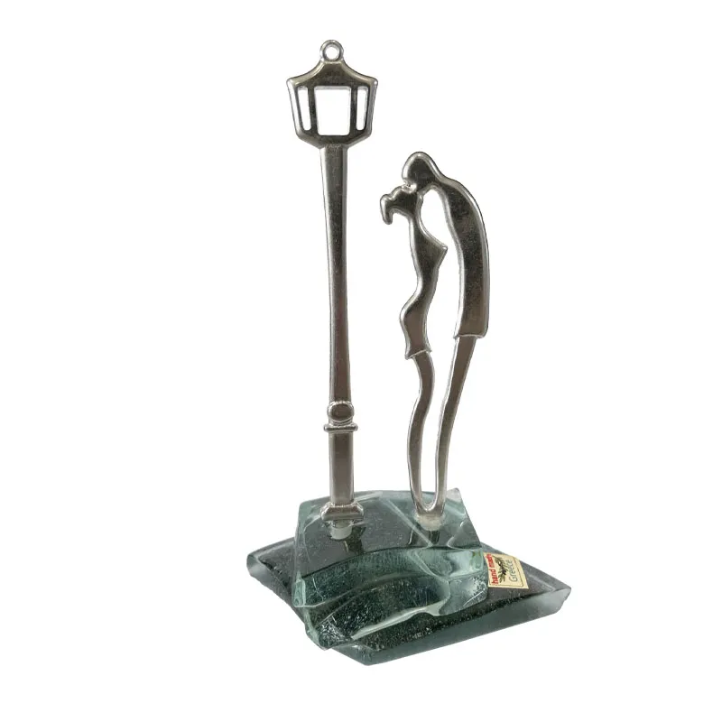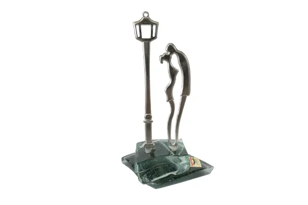 ΕΠΙΤΡΑΠΕΖΙΟ ΜΕΤΑΛΛΙΚΟ ΔΙΑΚΟΣΜΗΤΙΚΟ ΣΕ ΓΥΑΛΙΝΗ ΒΑΣΗ - ΧΡΩΜΑΤΑ: ΑΣΗΜΙ, ΜΑΥΡΟ, ΠΡΑΣΙΝΟ - ΘΕΜΑ: ΖΕΥΓΑΡΙ ΣΕ ΦΑΝΑΡΙ - ΥΛΙΚΑ: ΜΕΤΑΛΛO, ΓΥΑΛΙ - ΔΙΑΣΤΑΣΕΙΣ: Υ16.5cm DECORATIVE METAL TABLE ON GLASS BASE - COLORS: SILVER, BLACK, GREEN - THEME: COUPLE AT A STREET LIGHT - MATERIALS: METAL, GLASS - DIMENSIONS: H16.5cm