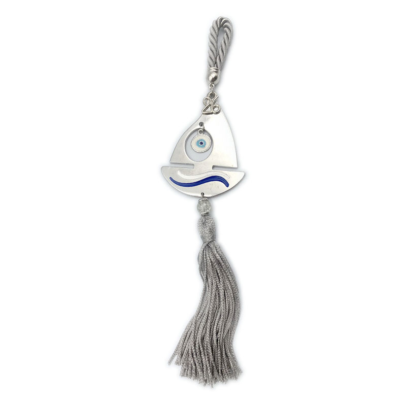 ΓΟΥΡΙ ΚΡΕΜΑΣΤΟ ΚΑΡΑΒΙ-ΜΑΤΙ - ΧΡΩΜΑ: ΑΣΗΜΙ, ΓΚΡΙ, ΜΠΛΕ, ΛΕΥΚΟ - ΥΛΙΚΑ: ΜΕΤΑΛΛΟ, ΚΟΡΔΟΝΙ, ΦΟΥΝΤΑ, ΣΜΑΛΤΟ ΔΙΑΣΤΑΣΕΙΣ / DIMΕNSIONS: Υ/Η 23cm SHIP-EYE HANGING GIFT - COLOR: SILVER, GREY, BLUE, WHITE - MATERIALS: IRON, CORD, TUFT, ENAMEL