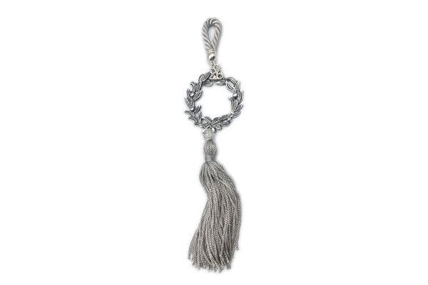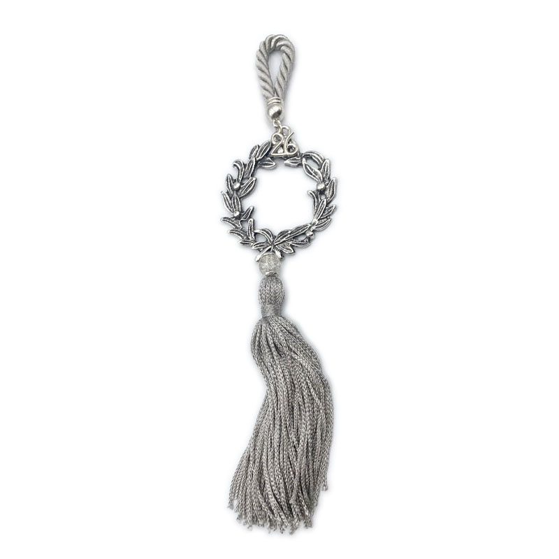 ΓΟΥΡΙ ΚΡΕΜΑΣΤΟ ΣΤΕΦΑΝΙ ΕΛΙΑΣ - ΧΡΩΜΑ: ΑΣΗΜΙ, ΓΚΡΙ - ΥΛΙΚΑ: ΜΕΤΑΛΛΟ, ΚΟΡΔΟΝΙ, ΦΟΥΝΤΑ ΔΙΑΣΤΑΣΕΙΣ / DIMΕNSIONS: Υ/Η 23cm OLIVE WREATH HANGING GIFT - COLOR: SILVER, GREY - MATERIALS: IRON, CORD, TUFT