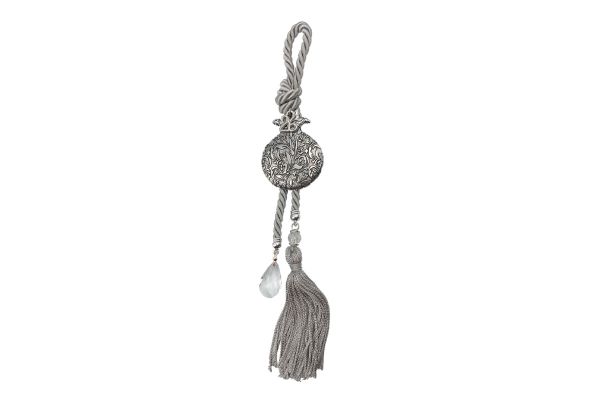 ΓΟΥΡΙ ΚΡΕΜΑΣΤΟ ΡΟΔΙ ΑΝΑΓΛΥΦΟ-ΚΡΥΣΤΑΛΛΟ - ΧΡΩΜΑ: ΑΣΗΜΙ, ΓΚΡΙ - ΥΛΙΚΑ: ΜΕΤΑΛΛΟ, ΚΟΡΔΟΝΙ, ΦΟΥΝΤΑ, ΓΥΑΛΙ ΔΙΑΣΤΑΣΕΙΣ / DIMΕNSIONS: Υ/Η 30cm POMEGRANATE EMBODIMENT-CRYSTAL HANGING GIFT - COLOR: SILVER, GREY - MATERIALS: IRON, CORD, TUFT, GLASS