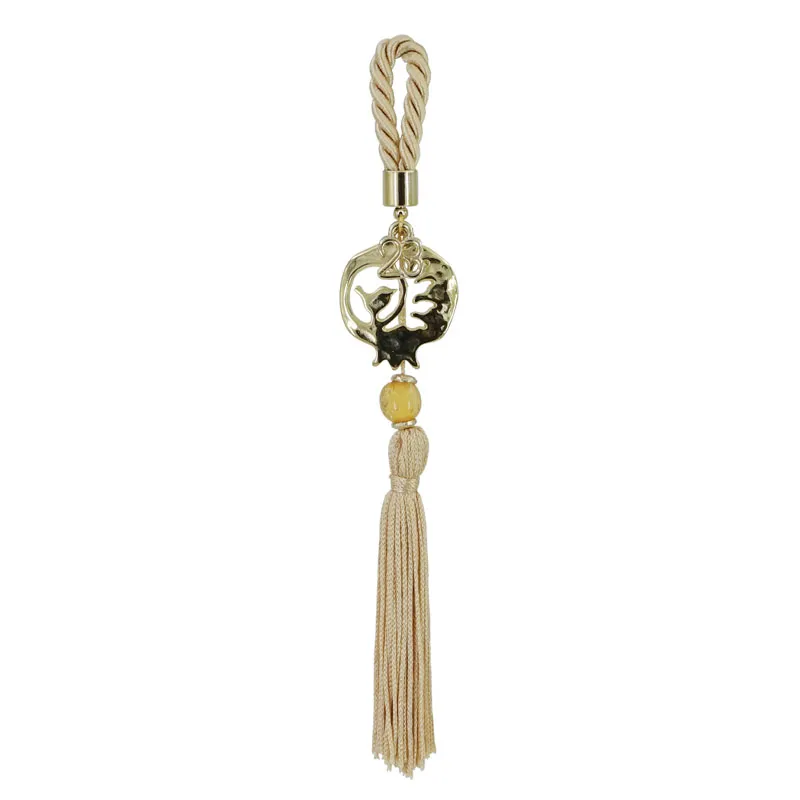 ΔΙΑΚΟΣΜΗΤΙΚΟ ΚΡΕΜΑΣΤΟ ΓΟΥΡΙ - ΧΡΩΜΑ: ΕΚΡΟΥ-ΧΡΥΣΟ - ΘΕΜΑ: ΡΟΔΙ-ΠΟΥΛΙ-ΕΤΟΣ - ΥΛΙΚΑ: ΜΕΤΑΛΛO, ΧΑΝΤΡΑ, ΚΟΡΔΟΝΙ, ΦΟΥΝΤΑ - YΨΟΣ: 20cm DECORATION HANGING GIFT - COLOR: CREAM-GOLD - THEME: POMEGRANATE-BIRD-YEAR - MATERIALS: METAL, BEAD, CORD, TASSEL - HEIGHT: 20cm