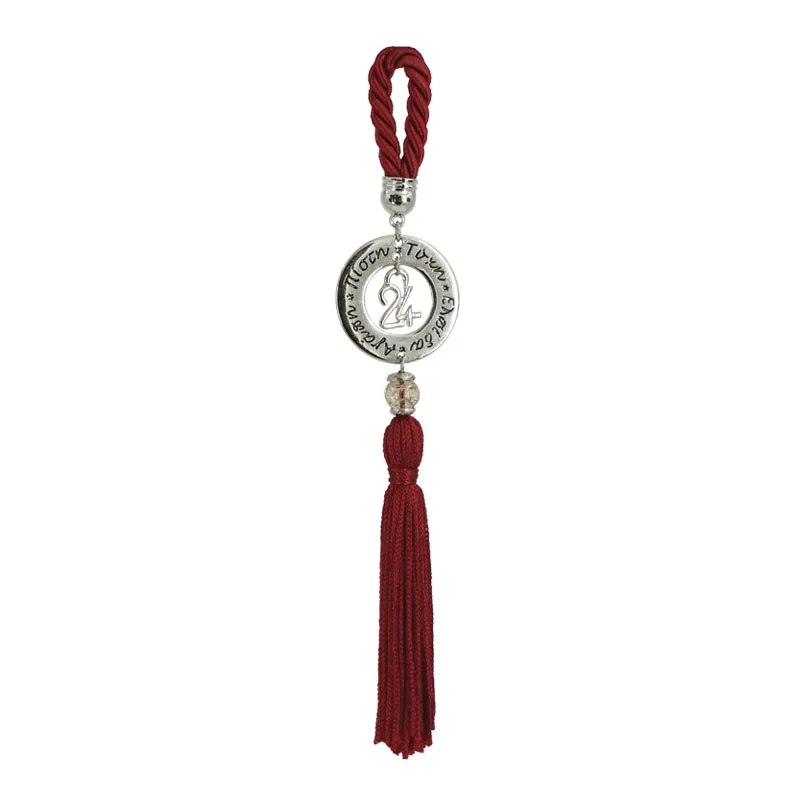 ΔΙΑΚΟΣΜΗΤΙΚΟ ΓΟΥΡΙ ΚΡΕΜΑΣΤΟ - ΧΡΩΜΑΤΑ: ΚΟΡΔΟΝΙ/ΦΟΥΝΤΑ-KOKKINO, ΣΤΟΙΧΕΙΟ-ΑΣΗΜΙ - ΣΤΟΙΧΕΙΑ: ΚΥΚΚΛΟΣ ΕΥΧΕΣ, ΧΑΝΤΡΑ, ΕΤΟΣ - ΥΛΙΚΑ: ΜΕΤΑΛΛO, ΚΟΡΔΟΝΙ, ΑΚΡΥΛΙΚΟ - YΨΟΣ: 20cm DECORATIVE HANGING GIFT - COLORS: CORD/TUFT-RED, ELEMENT-SILVER - ELEMENTS: CYCLE WISHES, BEAD, YEAR - MATERIALS: METAL, CORD, ACRYLIC - HEIGHT: 20cm