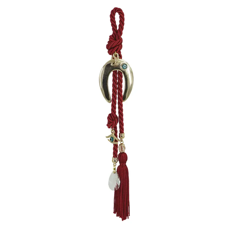 ΔΙΑΚΟΣΜΗΤΙΚΟ ΓΟΥΡΙ ΚΡΕΜΑΣΤΟ - ΧΡΩΜΑΤΑ: ΚΟΡΔΟΝΙ/ΦΟΥΝΤΑ-KOKKINO, ΣΤΟΙΧΕΙΟ-ΧΡΥΣΟ - ΣΤΟΙΧΕΙΑ: ΠΕΤΑΛΟ/ΜΑΤΙ, ΜΑΤΙ, ΧΑΝΤΡΑ, ΚΡΥΣΤΑΛΛΟΣ, ΕΤΟΣ - ΥΛΙΚΑ: ΜΕΤΑΛΛO, ΚΟΡΔΟΝΙ, ΣΜΑΛΤΟ, ΑΚΡΥΛΙΚΟ, ΓΥΑΛΙ - YΨΟΣ: 30cm DECORATIVE HANGING GIFT - COLORS: CORD/TUFT-RED, ELEMENT-GOLD - ELEMENTS: HORSESHOE/EYE, EYE, BEAD, CRYSTAL, YEAR - MATERIALS: METAL, CORD, ENAMEL, ACRYLIC, GLASS - HEIGHT: 30cm