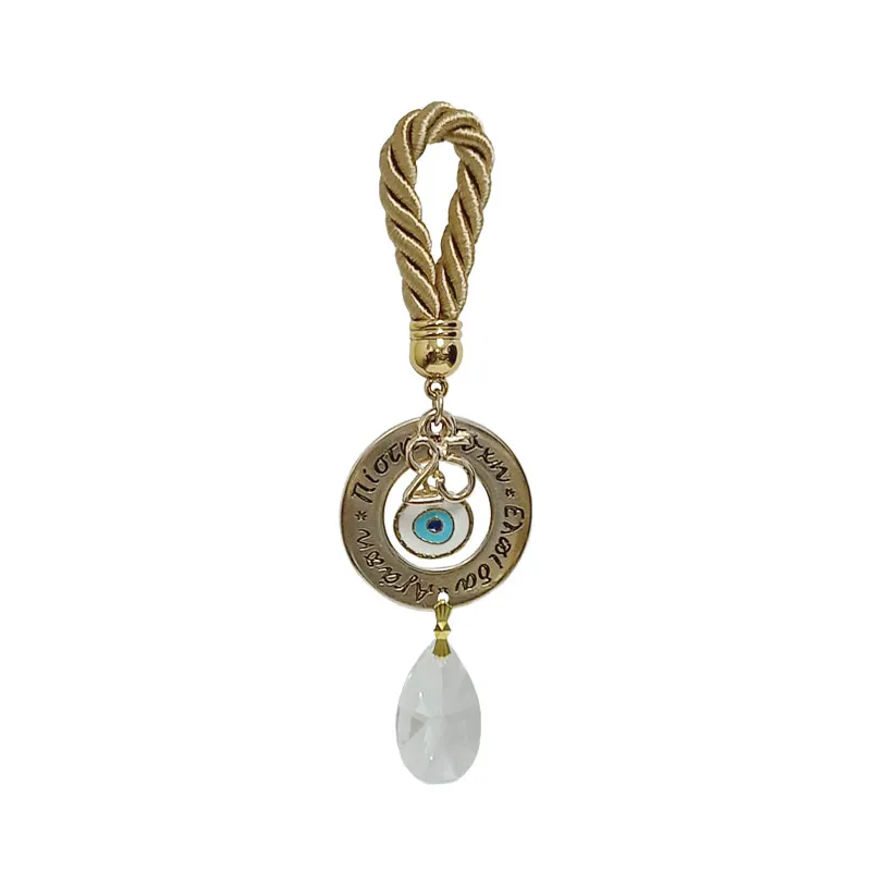 ΓΟΥΡΙ ΚΡΕΜΑΣΤΟ ΚΟΡΔΟΝΙ ΜΠΕΖ/ΚΥΚΛΟΣ ΕΥΧΕΣ ΧΡΥΣΟ ΜΕ MATI & ΚΡΥΣΤΑΛΛΟ - Y12cm
