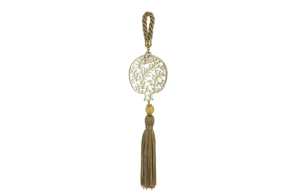 ΔΙΑΚΟΣΜΗΤΙΚΟ ΓΟΥΡΙ ΚΡΕΜΑΣΤΟ - ΧΡΩΜΑΤΑ: ΚΟΡΔΟΝΙ/ΦΟΥΝΤΑ-ΜΠΕΖ, ΣΤΟΙΧΕΙΟ-ΧΡΥΣΟ - ΣΤΟΙΧΕΙΑ: ΡΟΔΙ/ΔΕΝΤΡΟ, ΧΑΝΤΡΑ, ΕΤΟΣ - ΥΛΙΚΑ: ΜΕΤΑΛΛO, ΚΟΡΔΟΝΙ, ΑΚΡΥΛΙΚΟ - YΨΟΣ: 24cm DECORATIVE HANGING GIFT - COLORS: CORD/TUFT-BEIGE, ELEMENT-GOLD - ELEMENTS: POMEGRANATE/TREE, BEAD, YEAR - MATERIALS: METAL, CORD, ACRYLIC - HEIGHT: 24cm