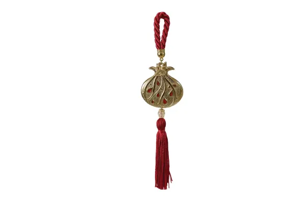 ΔΙΑΚΟΣΜΗΤΙΚΟ ΓΟΥΡΙ ΚΡΕΜΑΣΤΟ - ΧΡΩΜΑΤΑ: ΜΠΟΡΝΤΩ, ΧΡΥΣΟ, ΚΟΚΚΙΝΟ - ΣΤΟΙΧΕΙΑ: ΡΟΔΙ, ΧΑΝΤΡΑ, ΦΟΥΝΤΑ, ΕΤΟΣ - ΥΛΙΚΑ: ΜΕΤΑΛΛO, ΚΟΡΔΟΝΙ, ΑΚΡΥΛΙΚΟ, ΚΛΩΣΤΕΣ, ΣΜΑΛΤΟ - YΨΟΣ: 23cm DECORATIVE HANGING GIFT - COLORS: BURGUNDY, GOLD, RED - ELEMENTS: POMEGRANATE, BEAD, TUFT, YEAR - MATERIALS: METAL, CORD, ACRYLIC, THREADS, ENAMEL - HEIGHT: 23cm