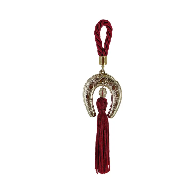 ΔΙΑΚΟΣΜΗΤΙΚΟ ΓΟΥΡΙ ΚΡΕΜΑΣΤΟ - ΧΡΩΜΑΤΑ: ΜΠΟΡΝΤΩ, ΧΡΥΣΟ - ΣΤΟΙΧΕΙΑ: ΠΕΤΑΛΟ, ΧΑΝΤΡΑ, ΦΟΥΝΤΑ, ΕΤΟΣ - ΥΛΙΚΑ: ΜΕΤΑΛΛO, ΚΟΡΔΟΝΙ, ΑΚΡΥΛΙΚΟ, ΚΛΩΣΤΕΣ - YΨΟΣ: 19cm DECORATIVE HANGING GIFT - COLORS: BURGUNDY, GOLD - ELEMENTS: HORSESHOE, BEAD, TUFT, YEAR - MATERIALS: METAL, CORD, ACRYLIC, THREADS - HEIGHT: 19cm