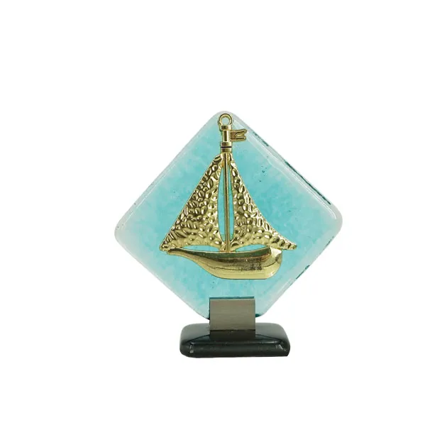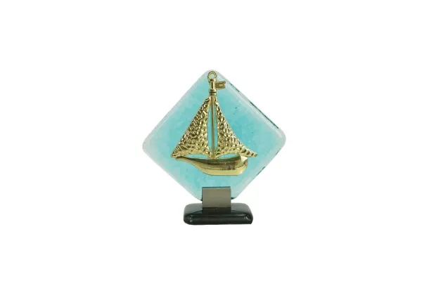 ΚΑΡΑΒΙ ΧΡΥΣΟ ΕΠΙΤΡΑΠΕΖΙΟ ΦΟΥΤΖΙ ΓΥΑΛΙ ΤΥΡΚΟΥΑΖ ΦΥΣΑΛΙΔΑ 12x11cm.