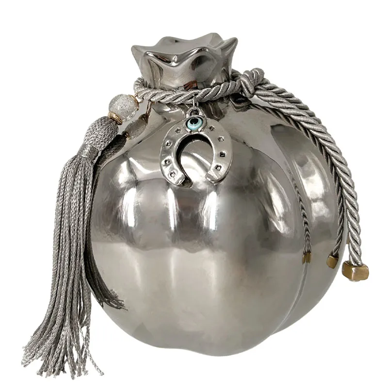 ΔΙΑΚΟΣΜΗΤΙΚΟ ΕΠΙΤΡΑΠΕΖΙΟ ΡΟΔΙ ΛΟΞΟ ΣΤΟΛΙΣΜΕΝΟ - ΧΡΩΜΑ: ΑΣΗΜΙ - ΣΤΟΛΙΣΜΑ: ΑΣΗΜΙ ΠΕΤΑΛΟ, KΟΡΔΟΝΙ, ΦΟΥΝΤΑ - ΥΛΙΚΟ: ΚΕΡΑΜΙΚΟ - ΔΙΑΣΤΑΣΕΙΣ: Φ13x14cm - ΚΙΒΩΤΙΟ: 1 TABLE DECORATED OBLIQUE POMEGRANATE - COLOR: SILVER - DECOR: SILVER HORSESHOE, CORD, TUFT - MATERIAL: CERAMIC - DIMENSIONS: Φ13x14cm - BOX: 1