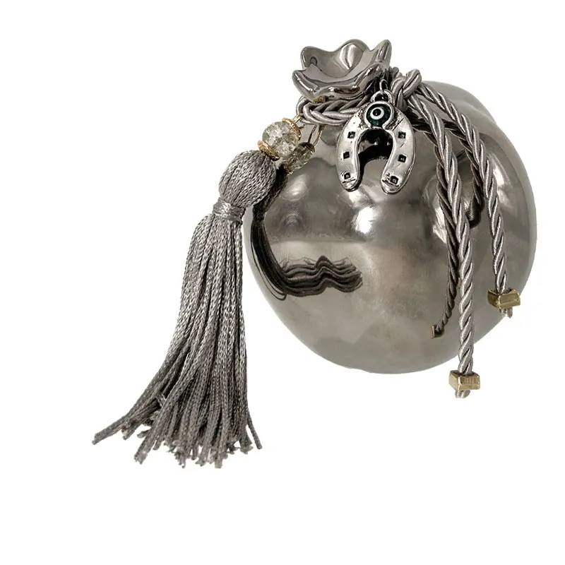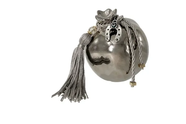 ΔΙΑΚΟΣΜΗΤΙΚΟ ΕΠΙΤΡΑΠΕΖΙΟ ΡΟΔΙ ΛΟΞΟ ΣΤΟΛΙΣΜΕΝΟ - ΧΡΩΜΑ: ΑΣΗΜΙ - ΣΤΟΛΙΣΜΑ: ΑΣΗΜΙ ΠΕΤΑΛΟ, KΟΡΔΟΝΙ, ΦΟΥΝΤΑ - ΥΛΙΚΟ: ΚΕΡΑΜΙΚΟ - ΔΙΑΣΤΑΣΕΙΣ: Φ9.3x10.5cm - ΚΙΒΩΤΙΟ: 1 TABLE DECORATED OBLIQUE POMEGRANATE - COLOR: SILVER - DECOR: SILVER HORSESHOE, CORD, TUFT - MATERIAL: CERAMIC - DIMENSIONS: Φ9.3x10.5cm - BOX: 1